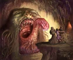 Tsathoggua: Monstruo reptil gigante creado por Clark Ashton Smith quien incorporó esta bestia a los Mitos del Cthluhu de Lovecraft. Este monstruo fue adorado como una deidad alienígena monstruosa pero adorado por pocos quienes no lo consideraban una bestia sin sentido.