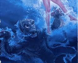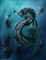 Lotán: El lotán es un ser híbrido mitad dragón marino mitad serpiente marina. Es una criatura gigantesca y salvaje que se desliza cual serpiente en el océano. Proviene de los mitos de Ugarit.