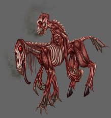 Kelpie: El kelpie es un caballo semifantasmal acuático que habita en los lagos. Lo curioso del kelpie es que puede transformarse en una mujer con lo que puede atraer a los jóvenes incautos para ahogarlos, o bien se aparece con su forma natural, la de un caballo, y cuando alguien lo monta el kelpie se lanza al agua y ahoga a su jinete. Esta criatura proviene de los mitos escoceses.