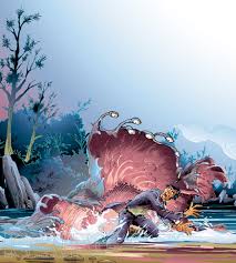 Escila: En la mitología griega, Escila era hija de Forcis, era la más bella de las ninfas acuáticas. Era tan bella que Glauco, un semidios, se enamoró de ella así que para obtener su corazón viajó con Circe la bruja para que ésta resolviera sus problemas. Circe intentó seducir a Galuco pues se había enamorado de él pero como no le correspondía se vengó de él y de Escila. Escila un día se bañó en un río lleno de algas malditas y de su cintura para abajo fuer convertida en un monstruo de seis bocas. Como bestia marina habitaría en las costas de Sicilia y atacaría a los barcos que pasaran por ahí devorandolos con sus bocas.