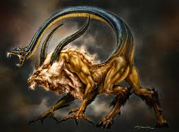 Quimera: La quimera es un monstruo originario de la mitología griega. Era mitad dragón, mitad león y mitad cabra. Era un ser tan peligroso que habitaba en una isla desolada. Era hijo de Equidna y Tifón, otros dos peligrosos monstruos de la mitología griega. Un héroe montado en Pegaso le dio muerte a esta feroz bestia.